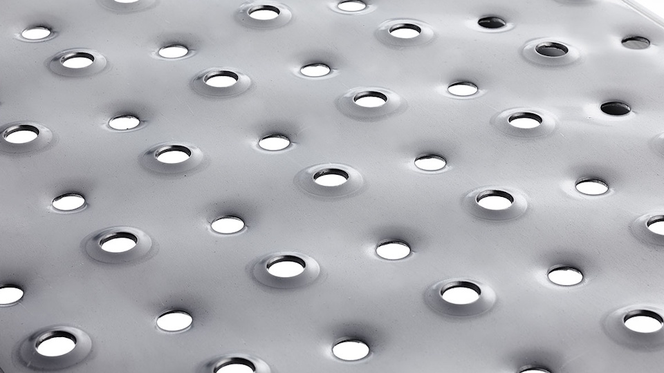 - After successful incoming inspection, the coils are transferred to the production line. Here, specific perforations are punched into the surface of the product using appropriate tools, and the perforated sheet is subsequently cut to length.