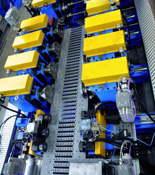 - The perforated sheets are bent into a C-profile using a CNC machine.