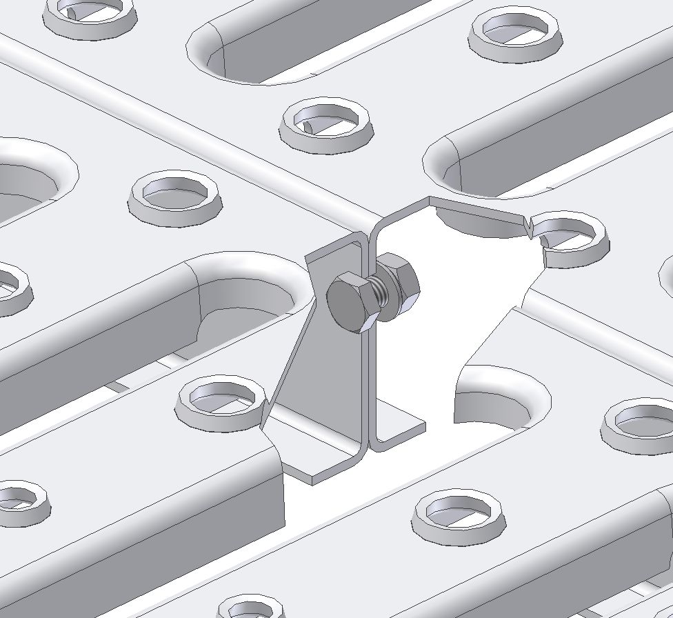 In the case of unbolted parts, it prevents the formation of a trench edge over large spans and makes it possible to distribute the load. It consists of a connecting element and self-tapping countersunk head screws M5x20 DIN 7516D.