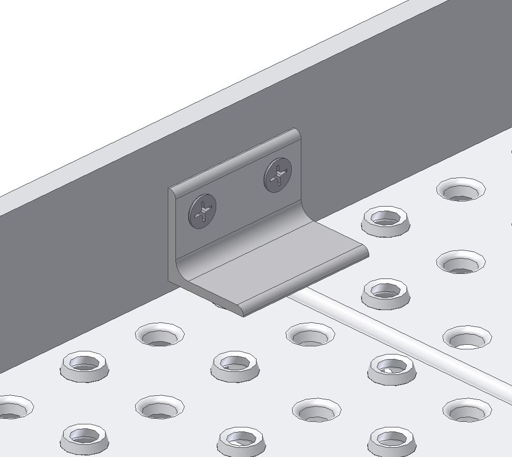 It prevents the sheet metal profile from lifting. It consists of an angle bracket 30/30/3…50 mm long and two self-tapping screws M5x20 DIN 7516D.