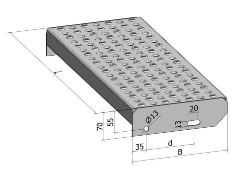 - upon request, an anti-slip tread can be added in the form of a serrated strip on the leading edge