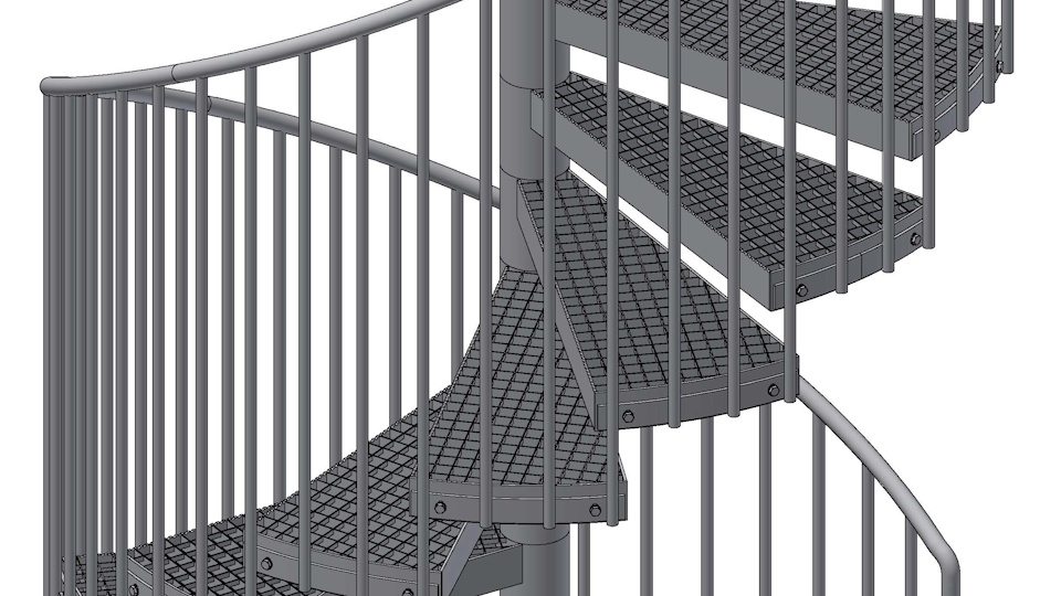 Spiral staircases are used as auxiliary staircases, whose advantage is their small floor plan area. The staircases are supplied as a modular system.