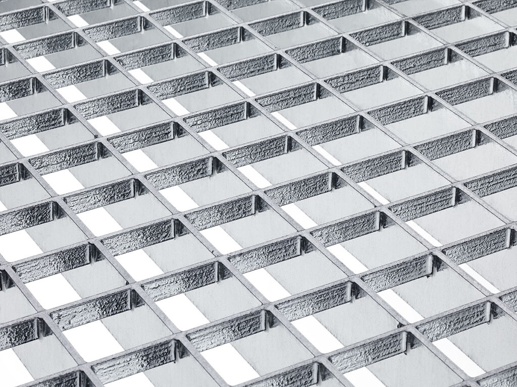 Metalna podna rešetka sastavljena od nosivih traka s utisnutim razdjelnim trakama. Prikladna za podove, platforme, stubišta, fasade, spuštene stropove i sl.