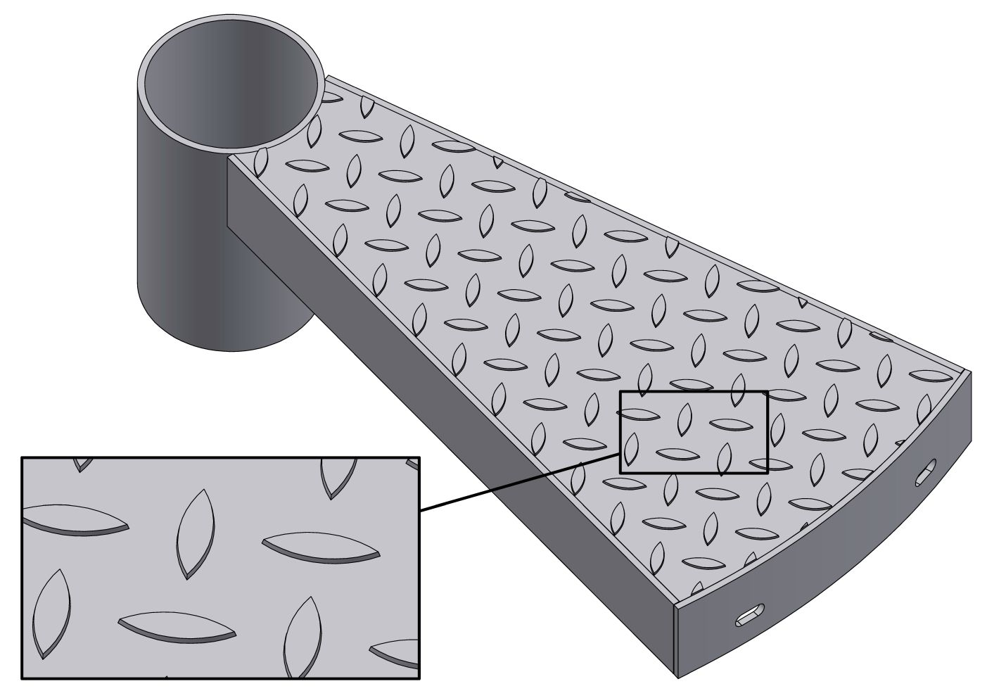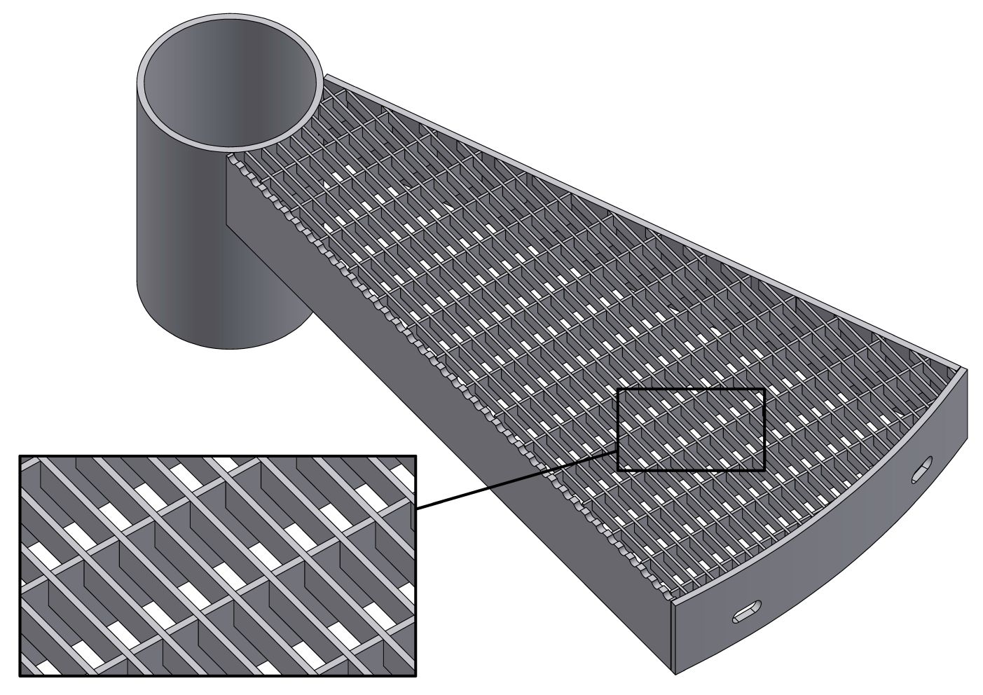 - Gornja površina gazišta i podesta izrađena je od rešetkastih gazišta iz širokog proizvodnog programa Lichtgitter CZ.